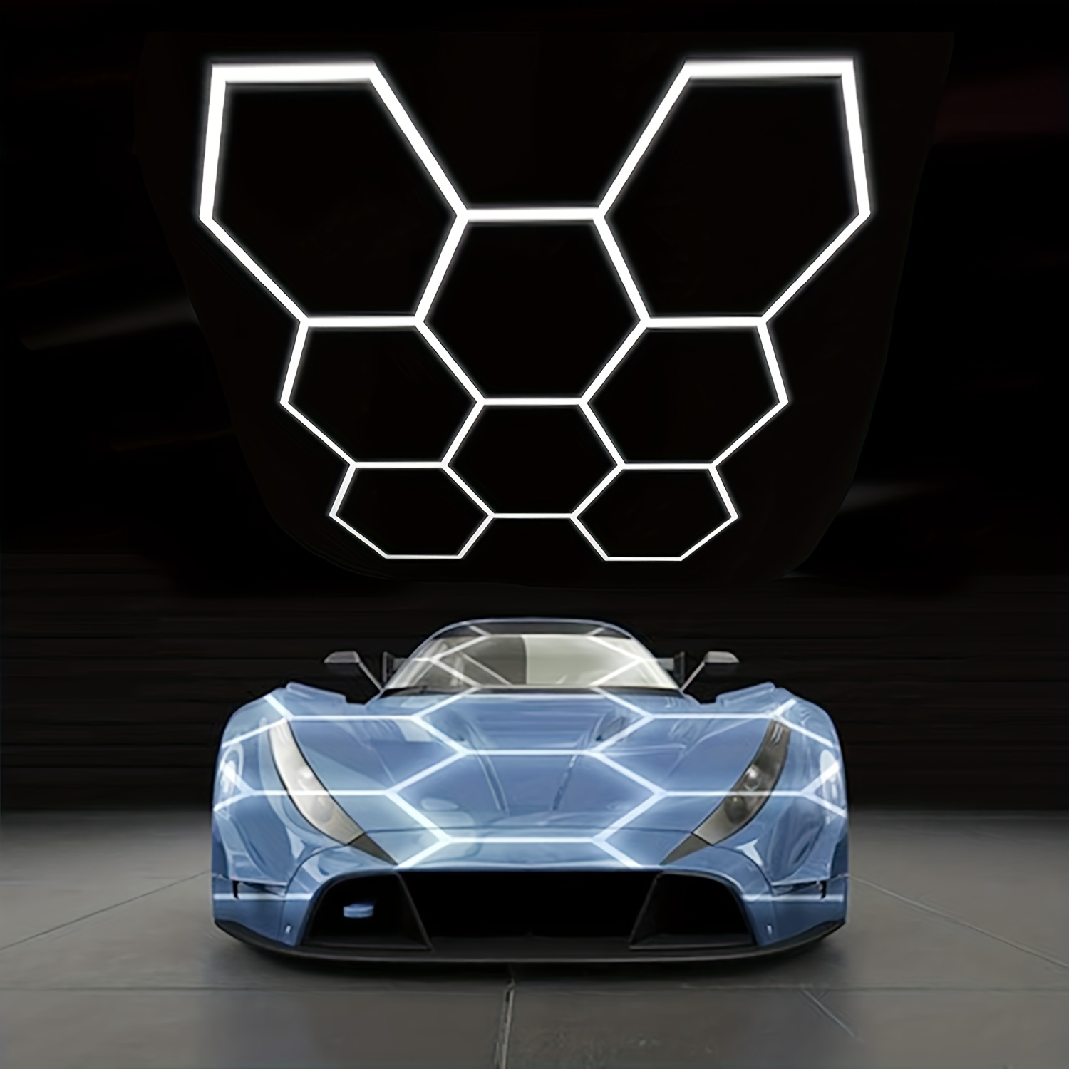Versatile Applications - This LED garage lamp features a distinctive design and is suitable for numerous locations, making it perfect for workshops. 1. Outstanding Visual Effect: The hexagonal lighting setup is crafted to emphasize every detail and showcase the fine artistry of the video studio. By utilizing the optimal color temperature range for construction, it minimizes visual strain for maintenance staff and enhances the car's inherent beauty.